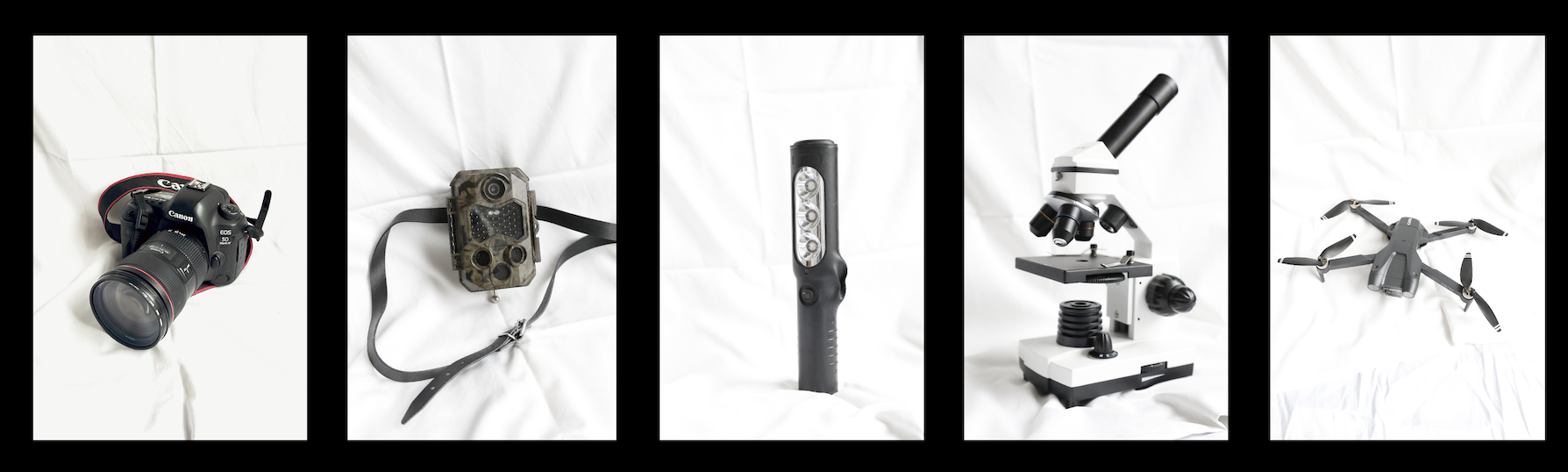Repurposing surveillance tools (night vision, flashlights, drones, microscopes)
